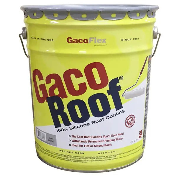 GacoRoof 100% Silicone Roof Coating creates a seamless membrane to seal and repair existing roofs and permanently protect against leaks, permanent ponding water and the damaging effects of severe weather. GacoRoof is available in several colors to enhance the aesthetics of any roof. Ideal for use on flat and sloped roofs including, but not limited to, large and small buildings, homes, garages and patio covers, sheds and barns, mobile homes, RVs and more.