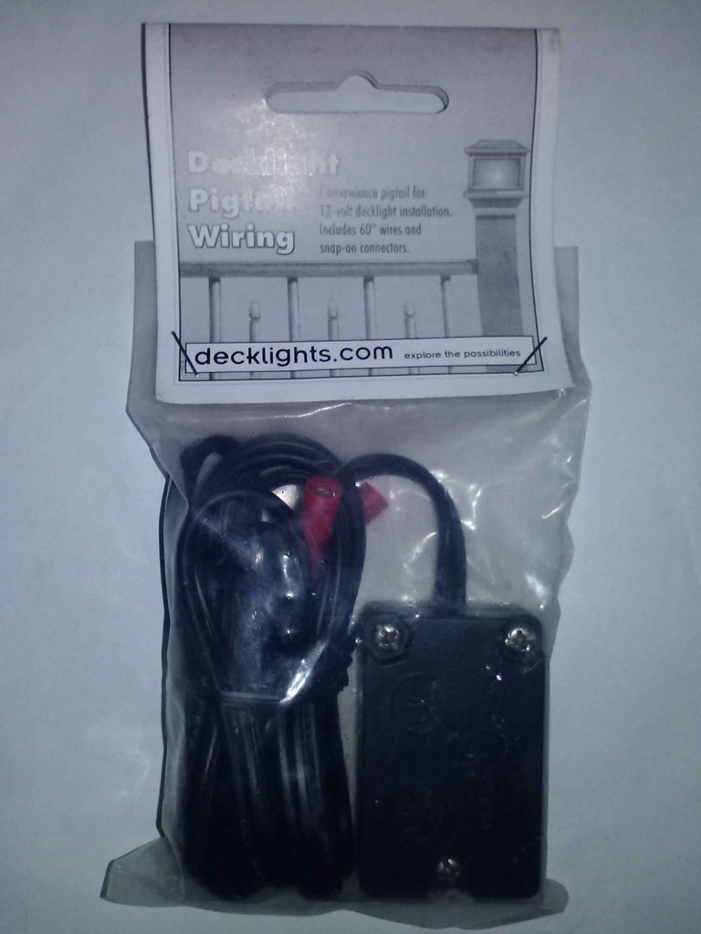 Quick-Connect Pigtail made to fit any 12V Aurora Deck Post Light. Plug-on connectors at fixture end and quick-connect T-tap on mainline end make installation a "snap", literally. Eliminates splices and potential breaks in the mainline, creating a more reliable installation overall. Select from various lengths to fit your design. Stocked locally and available to ship immediately.