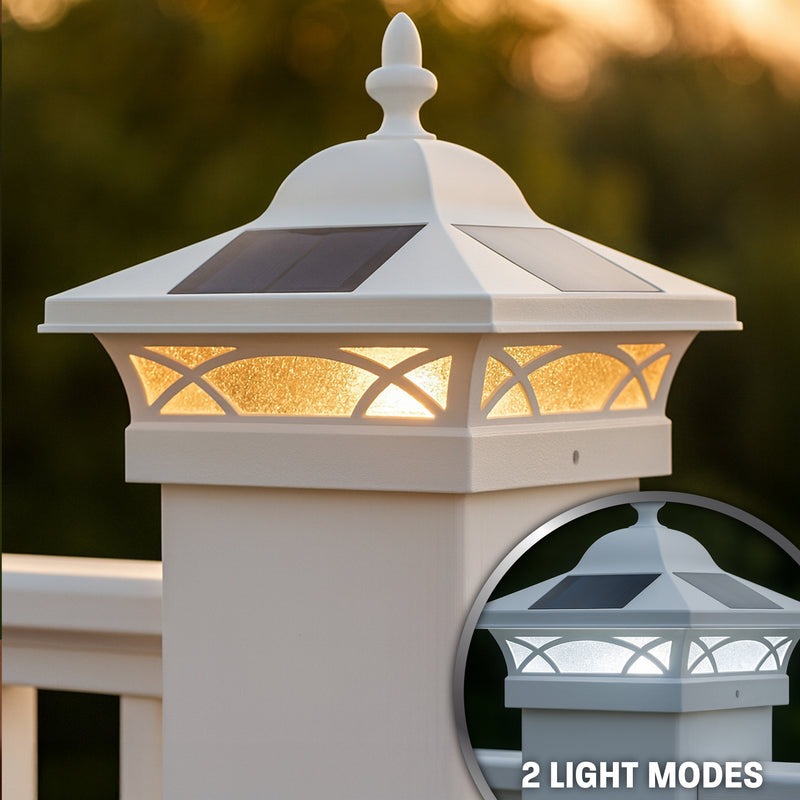 Designed for versatility, the Coventry Solar Post Cap fits seamlessly on 5"x5", 5.5"x5.5", and 6"x6” fence and deck posts (7.5“x7.5” adapter sold separately), making it the perfect addition to enhance your home's curb appeal. Elevate your outdoor ambiance with this exceptional solar lighting solution that blends beauty, functionality, and brilliant illumination.