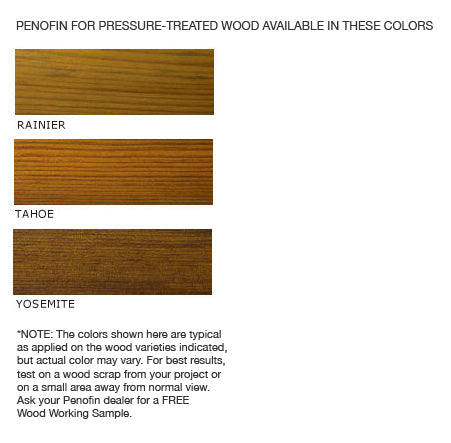 Penofin's pressure-treated wood stain formula contains sustainably harvested Brazilian Rosewood Oil to give the wood a natural tone and texture. Suitable for all types of pressure-treated wood. Penofin pressure-treated wood stain tones are: Rainier, with golden honey tones to bring out the rich, smooth look of lighter woods; Tahoe, with rich cinnamon tones for that rich, bold look; and Yosemite, showing warm, dark brown tones that complement natural surroundings. Best of all, Penofin pressure-treated oil finish is so easy to apply.